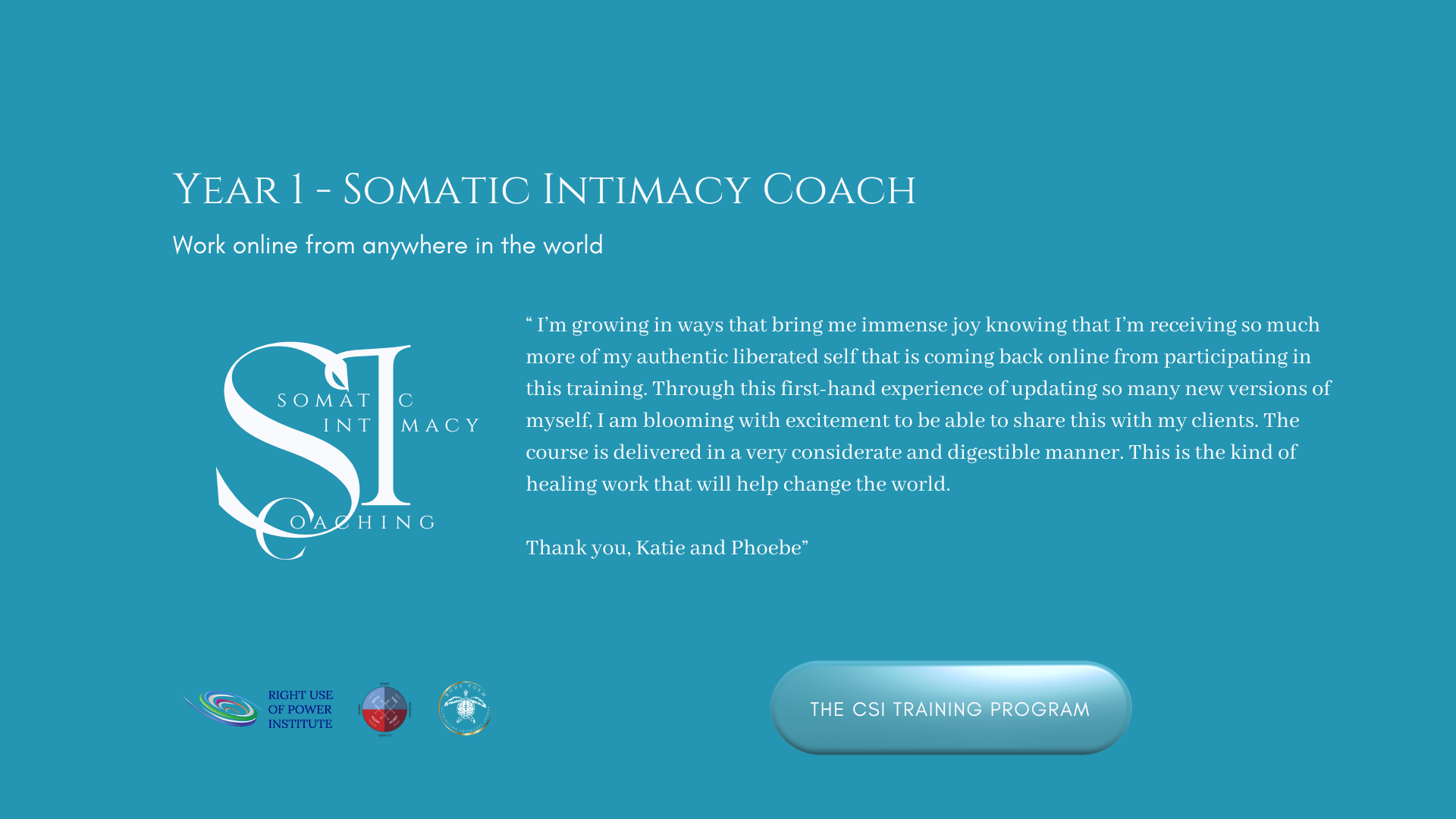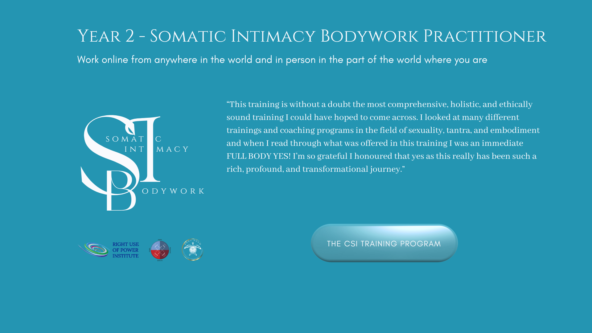 First year: CSI - Certified Somatic Intimacy Coach Training Program